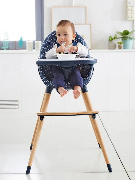 Chaise haute en acier, hêtre, polyéthylène et polyester
